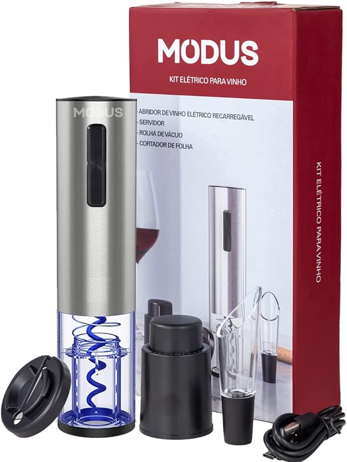 Com sua funcionalidade e elegância, o abridor de garrafas de vinho elétrico Modus é um item indispensável para qualquer apreciador de vinhos, que deseja desfrutar da bebida com praticidade e estilo.